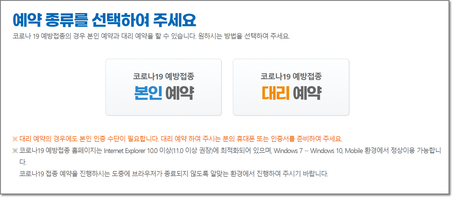 백신접종 예약은 본인이 직접하는 방법과 다른사람이 대신 신청해주는 대리 예약으로 나눌 수 있습니다. 대리 예약의 경우에도 본인 인증 수단이 필요하니 개인명의의 휴대폰을 준비한 상태에서 예약 프로세스를 진행 해주시면 되겠습니다.